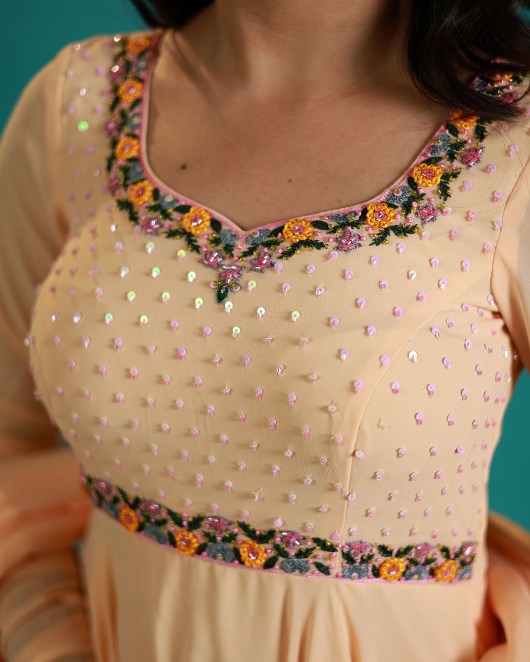 Sonam-Pastel peach floor length anarkali gown and duppata | Petals Chennai