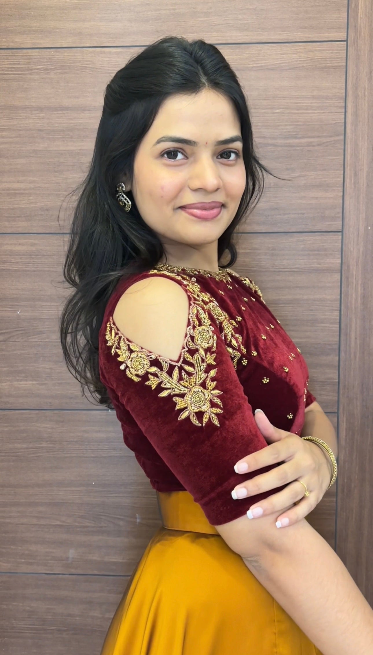 Fabric: Premium velvet with rich embroidery(crop top) and Glossy gorgette for skirt